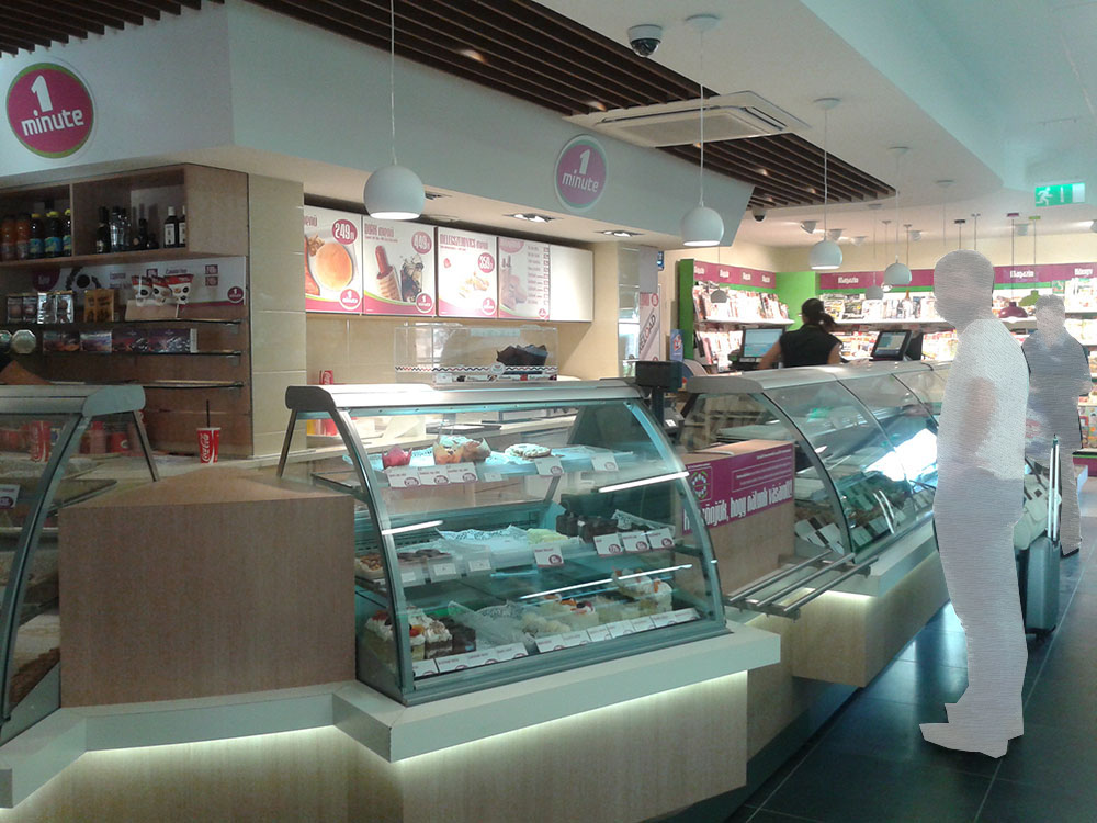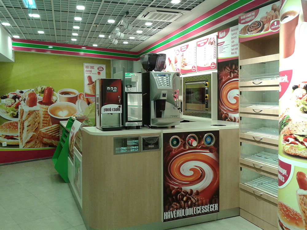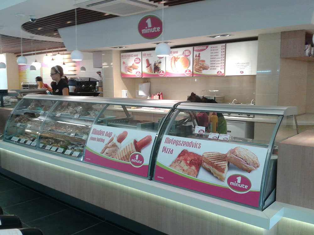 A moduláris pultrendszerbe illesztett süteményes hűtőpultok, az integrált LED világítás, poháradagolók és az impulzus termékek bemutatására szolgáló polcok, lehetővé teszik a termékek vonzó bemutatását és a gyors és kényelmes kiszolgálást.