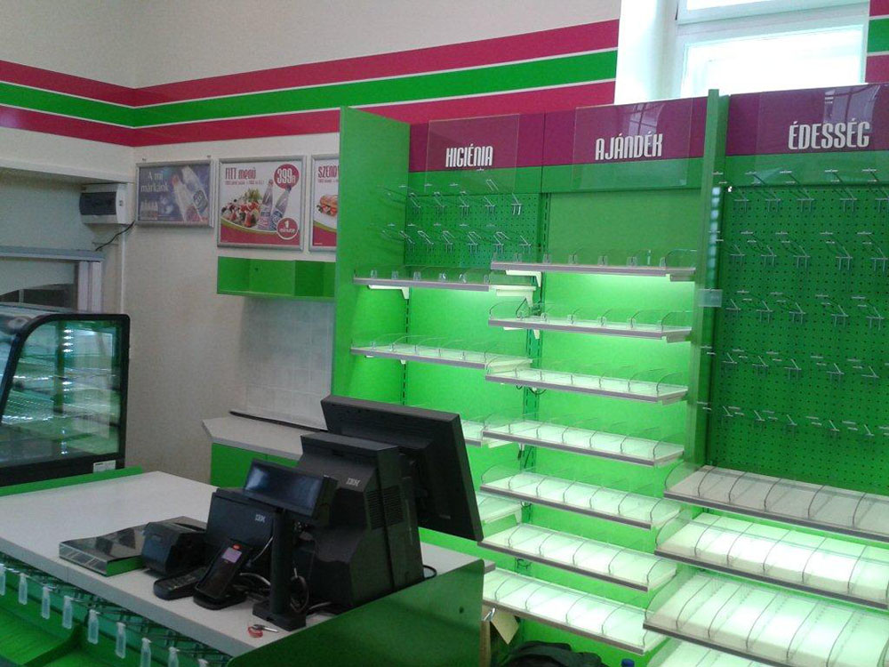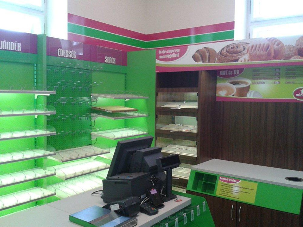 A 1Minute márka arculatához igazodó üzletek, modern megjelenéssel, dinamikus szín és anyaghasználattal, az értékesítési igényeknek megfelelően kialakított moduláris fali állványokkal és térben álló bútorokkal, gondolákkal, könyvpiramisokkal és beépített világítással rendelkeznek. A fali állványok és a térben álló gondolák kialakítása számtalan lehetőséget biztosít a folyamatosan változó termékkínálat hatékony bemutatására és tárolására; a fali állványok és gondolák hátfala az elhelyezendő termékek függvényében: fa, fém, perforált lemez, sávos fali panel; a fali állványok és a térben álló gondolák változatos polcozása is rugalmasan alakítható és könnyen átalakítható és módosítható. Egy- és több szintes polcok, egyenes és döntött polcok, lemez, fa és üveg polcok, kampók, akasztók, plexi tárolók biztosítják a termékspecifikus és ergonomikus termékelhelyezést.