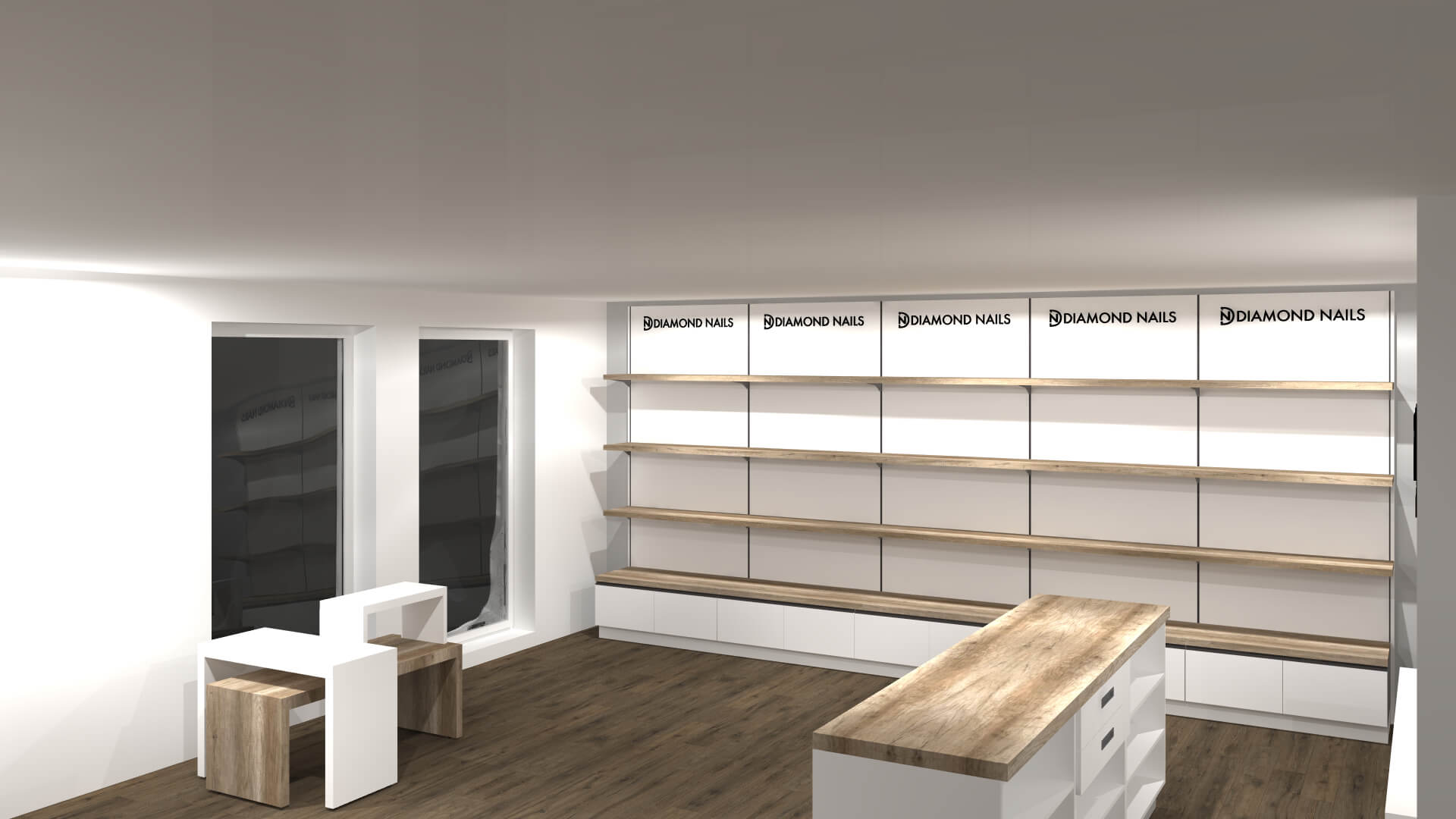 A SLIM függőleges perforált alumínium fali sínes rendszer a rejtett síneknek köszönhetően letisztult, esztétikus megjelenést biztosít üzletének.